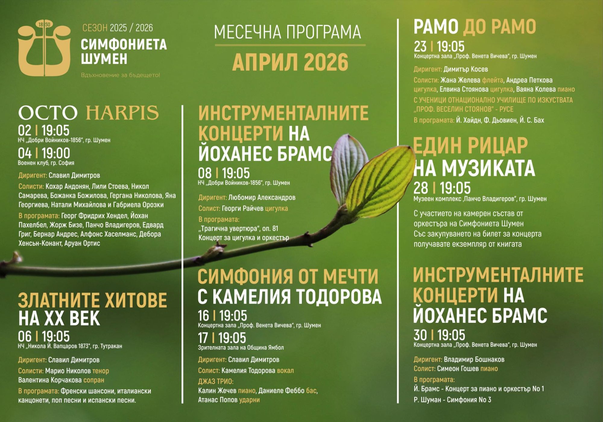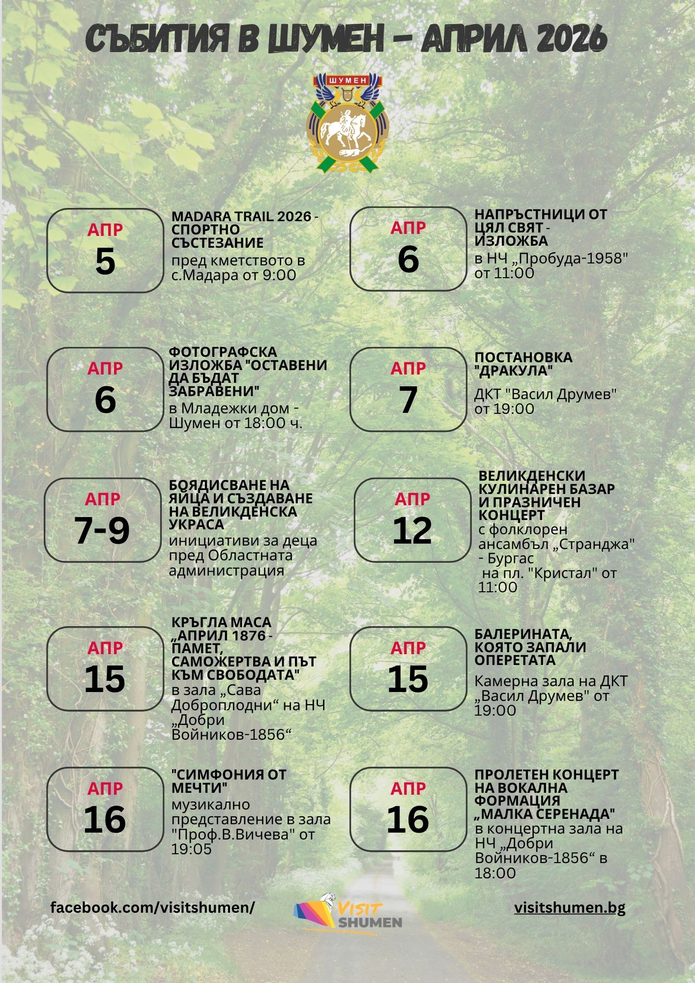 Заповядайте културната програма за април 2026 за гр. Шумен!