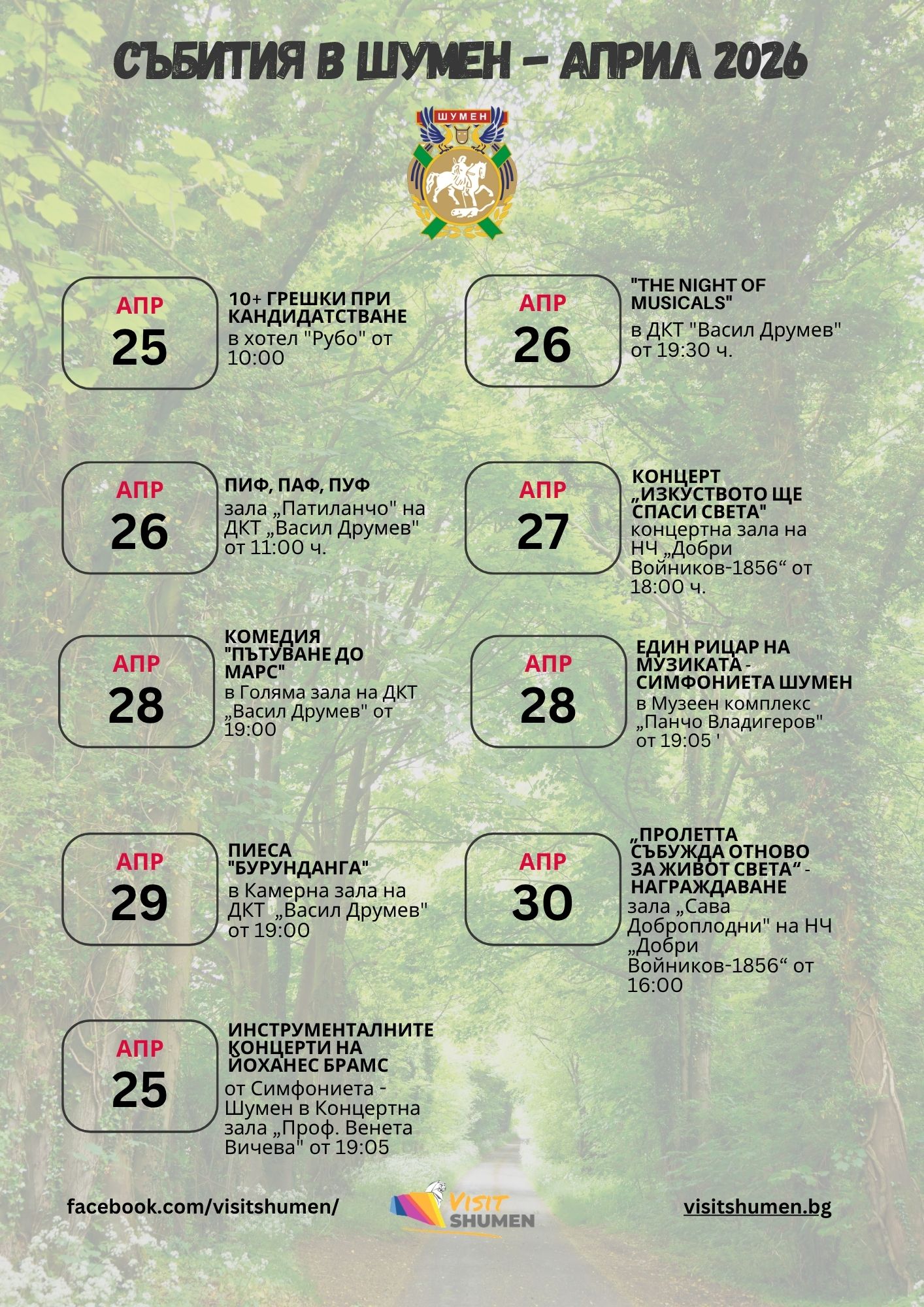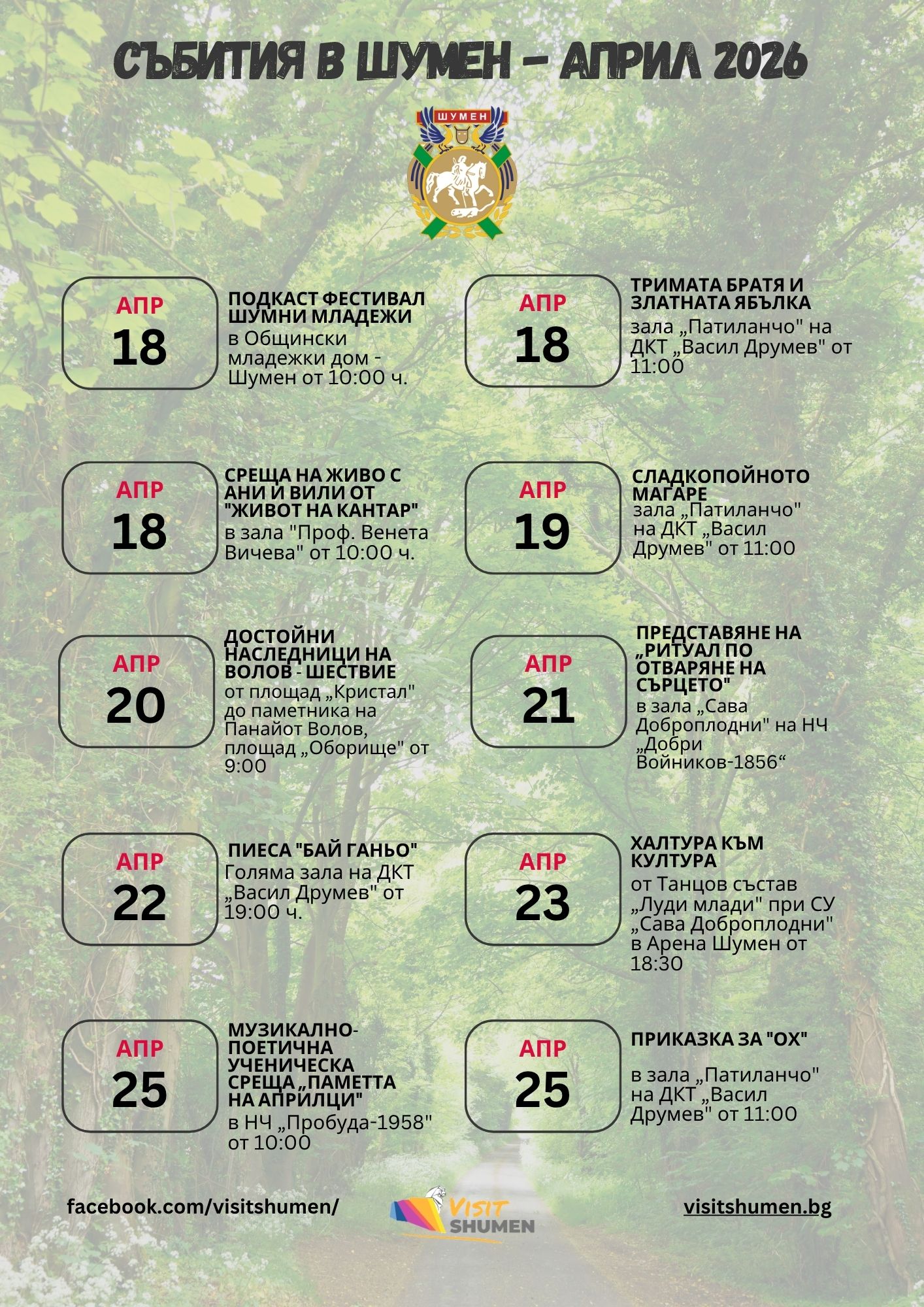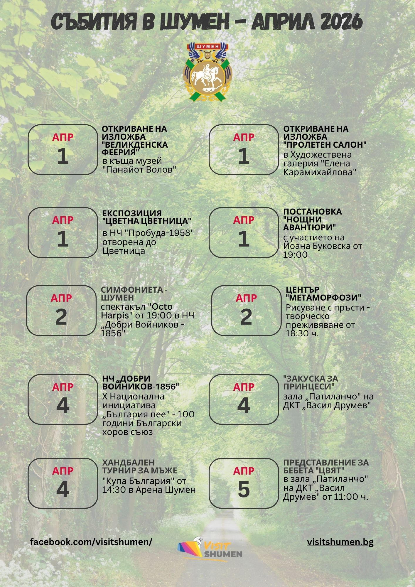 Заповядайте културната програма за април 2026 за гр. Шумен!