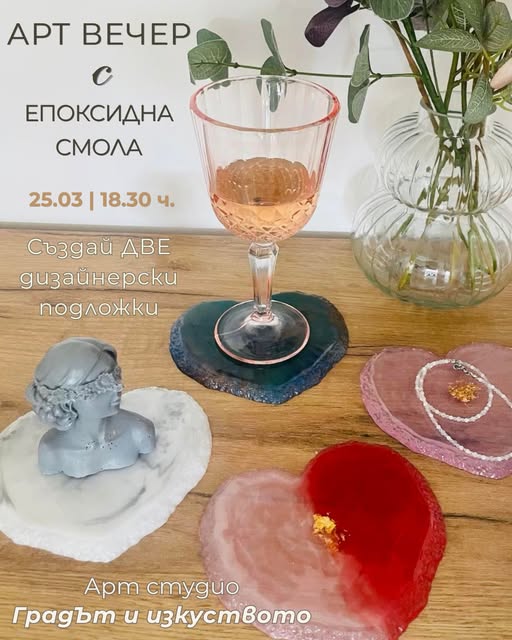 Заповядайте на арт вечер за изработка на подложки от епоксидна смола. 🍷 Resin Art вечер –създай две дизайнерски подложки от…