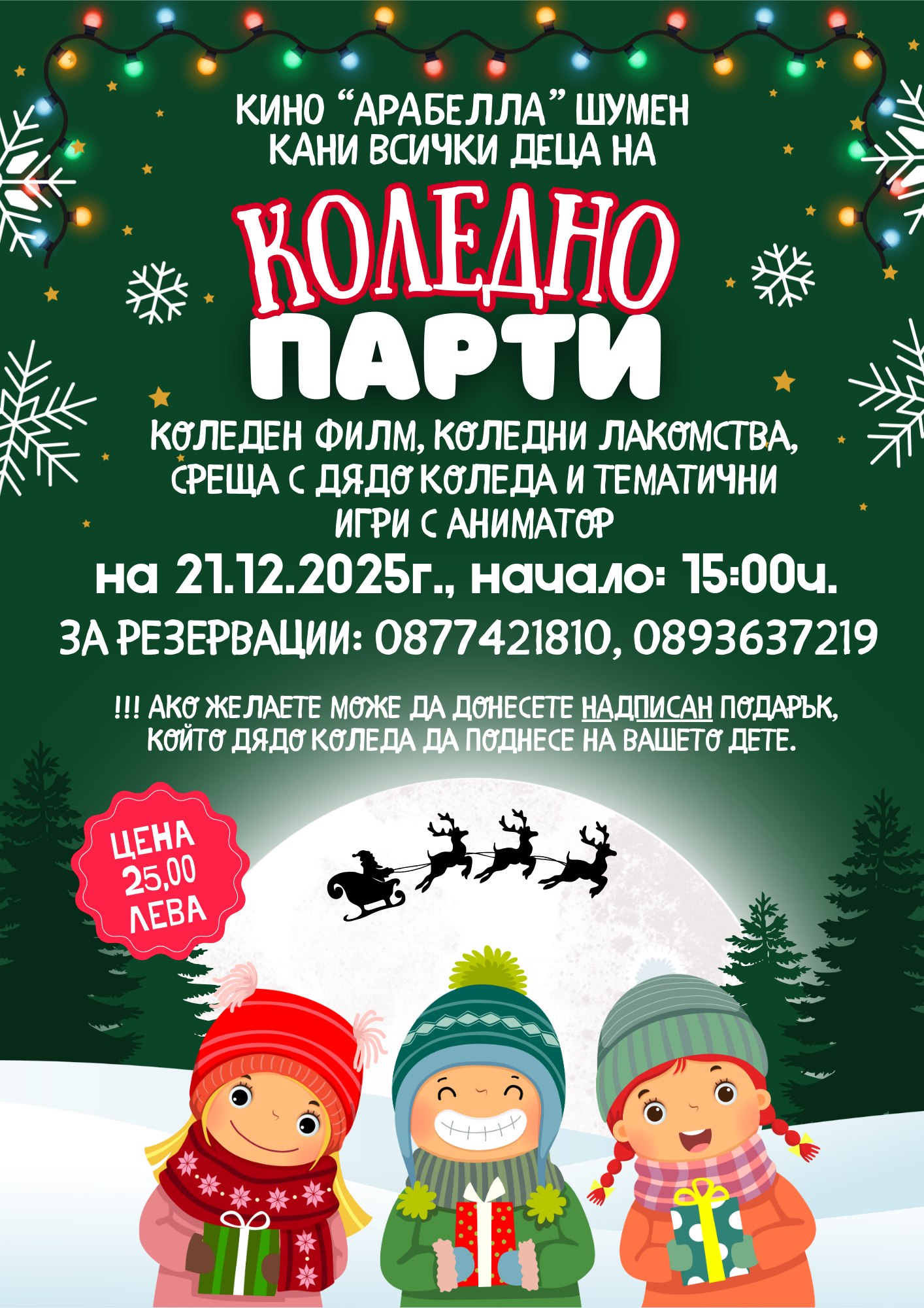 Мили деца, заповядайте на весело коледно парти с игри, подаръци, лаякомства и много забавления! „🎄✨ Коледната магия идва в Кино…