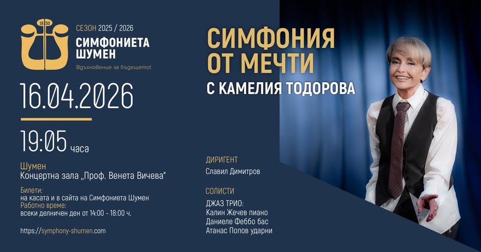 Заповядайте на прекрасен концерт с невероятната Камелия Тодорова! 🎼 ПРЕМИЕРА! „СИМФОНИЯ ОТ МЕЧТИ С КАМЕЛИЯ ТОДОРОВА“ ✨🎶🎻 Концерт на Симфониета…