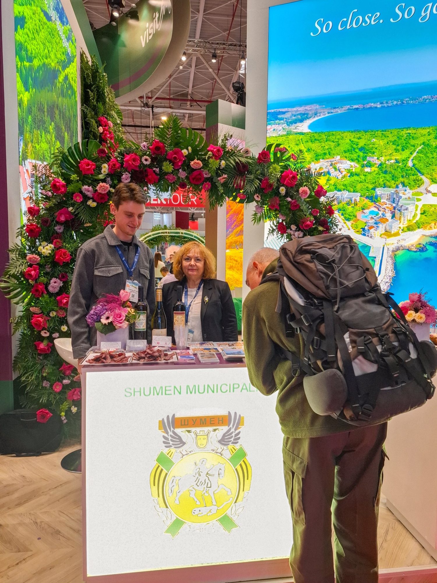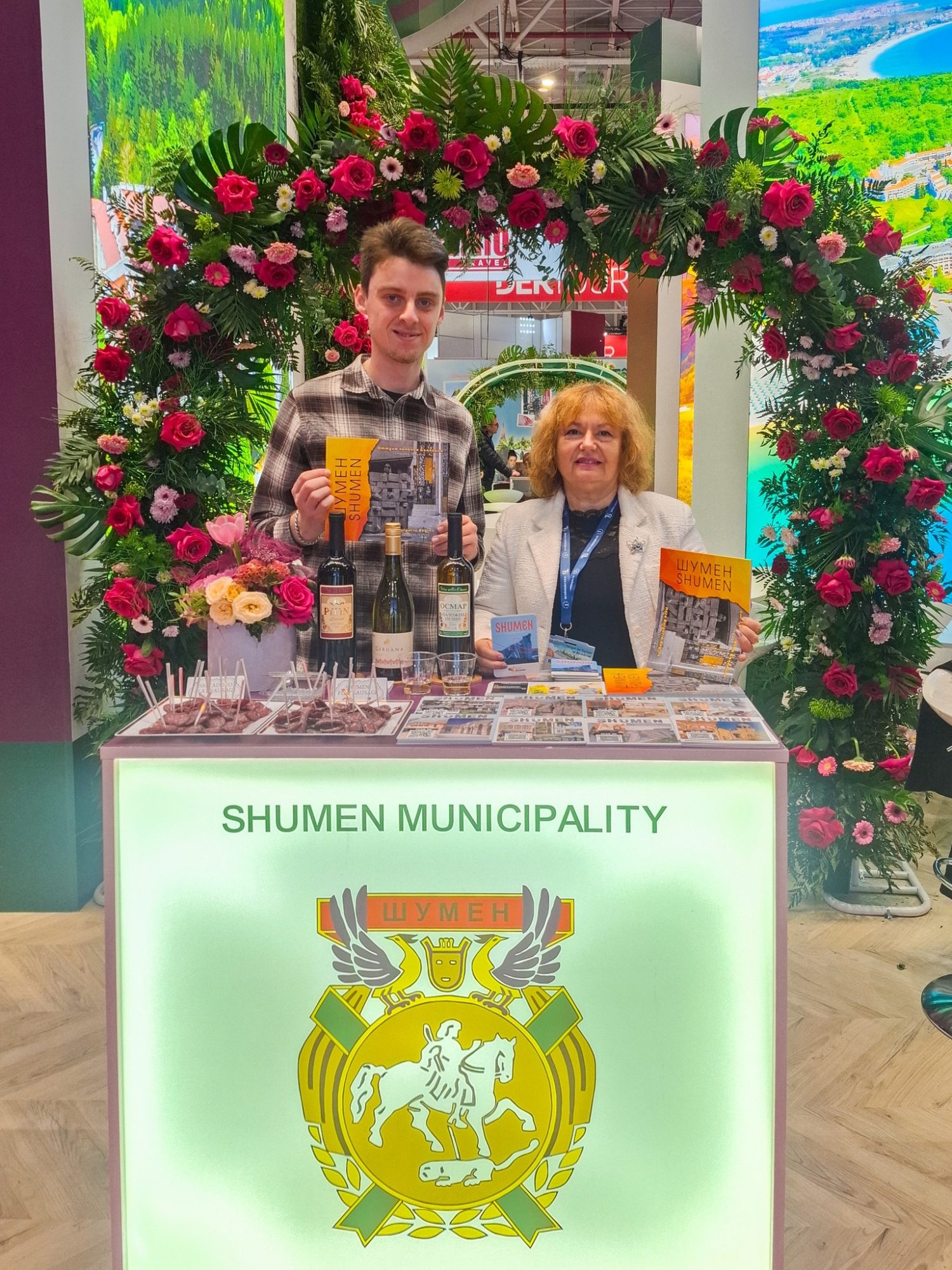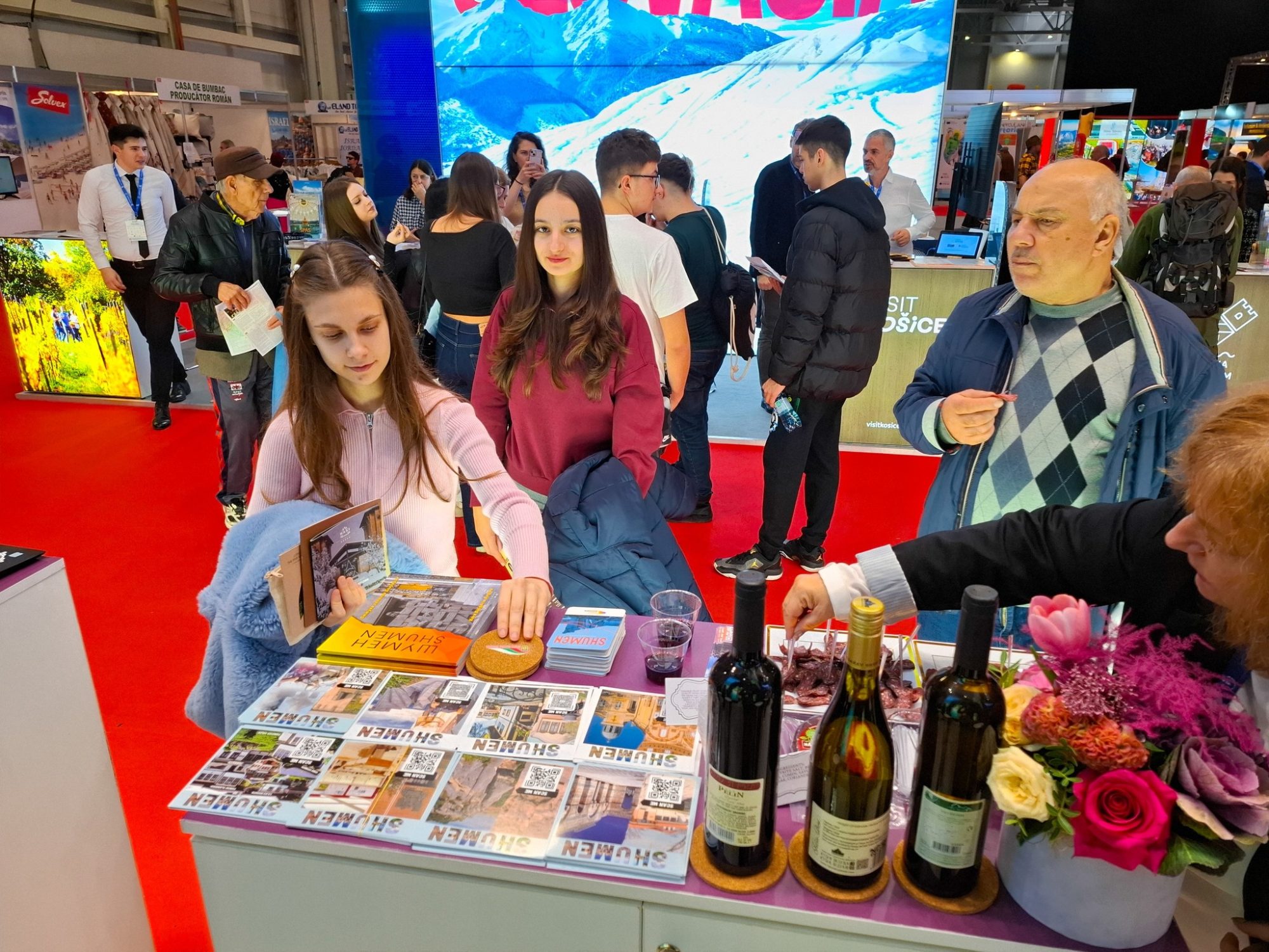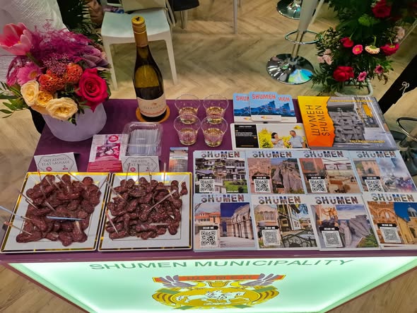 Shumen took part in the International Tourism Fair in Bucharest, Romania. Our beautiful city was represented by the Tour guide Rusanka Tsaneva and the Junior Tourism expert Kaloyan Zhivkov. We presented our new book about the tourism attractions in Shumen region, as well as special wine from Osmar winery and sausage (sudjuk).